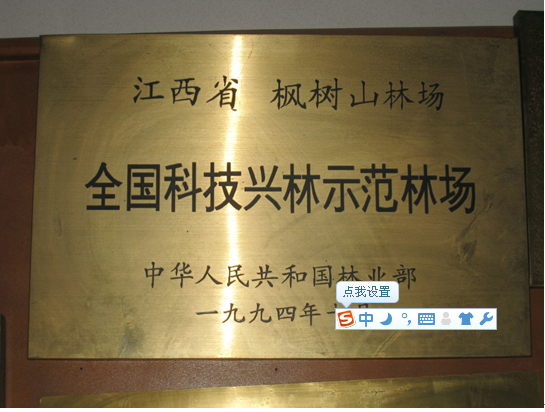我场先后获得"全国造林绿化先进单位"、"全国科技兴林示范林场"、"南京林业大学就业实训社会实践基地"。